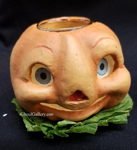 Just released from an Estate! Totally NEW in a box, Mint Condition Party Pumpkin Very Rare Large Pumpkin 14" tall, Taller when hat is in hand Paper pulp. Incredible detail by Scott Smith. This is from years ago when Scott produced for Bethany Lowe. He is not longer with that group and this was one of his incredible creations back then. This is in an unopened box and must be in Mint Condition. We will most likely open it before shipping to assure quality. The left hand fingers hold his pumpkin hat that he tips off his head so you can fill it with candy. This is my favorite piece of all the Rucus produced by Bethany Lowe. $837.99 |