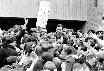 | As Bobby exited the PSU gym there were more crowds outside, who could not make it into the crowded gym. In shaking hands as he made his way through the crowd, someone actually took his left hand cufflink as a souvenir. |
