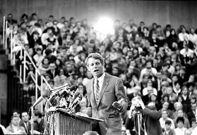 | In May of 1968, Bobby Kennedy's campaign trail brought him to Oregon for the 1968 primary. Lyndon Johnson had pulled out as a candidates, and Bobby was the leading candidate. Bobby came in 2nd to Eugene McCarthy in Oregon's primary and then moved onto California for his fate with destiny. |